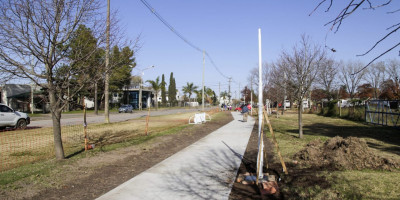 Comienza el trazado de la calle colectora en el acceso Hipólito Yrigoyen